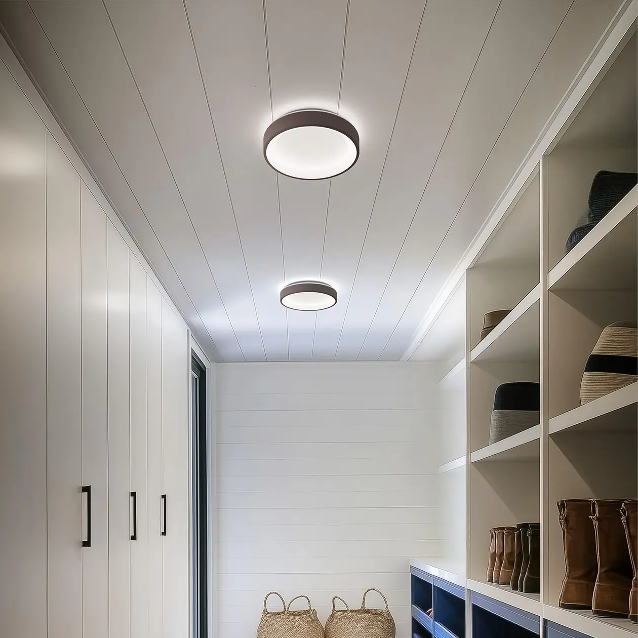Plafoniera da soffitto con corpo in alluminio verniciato texturizzato nei colori bianco, nero e dark brown esternamente.